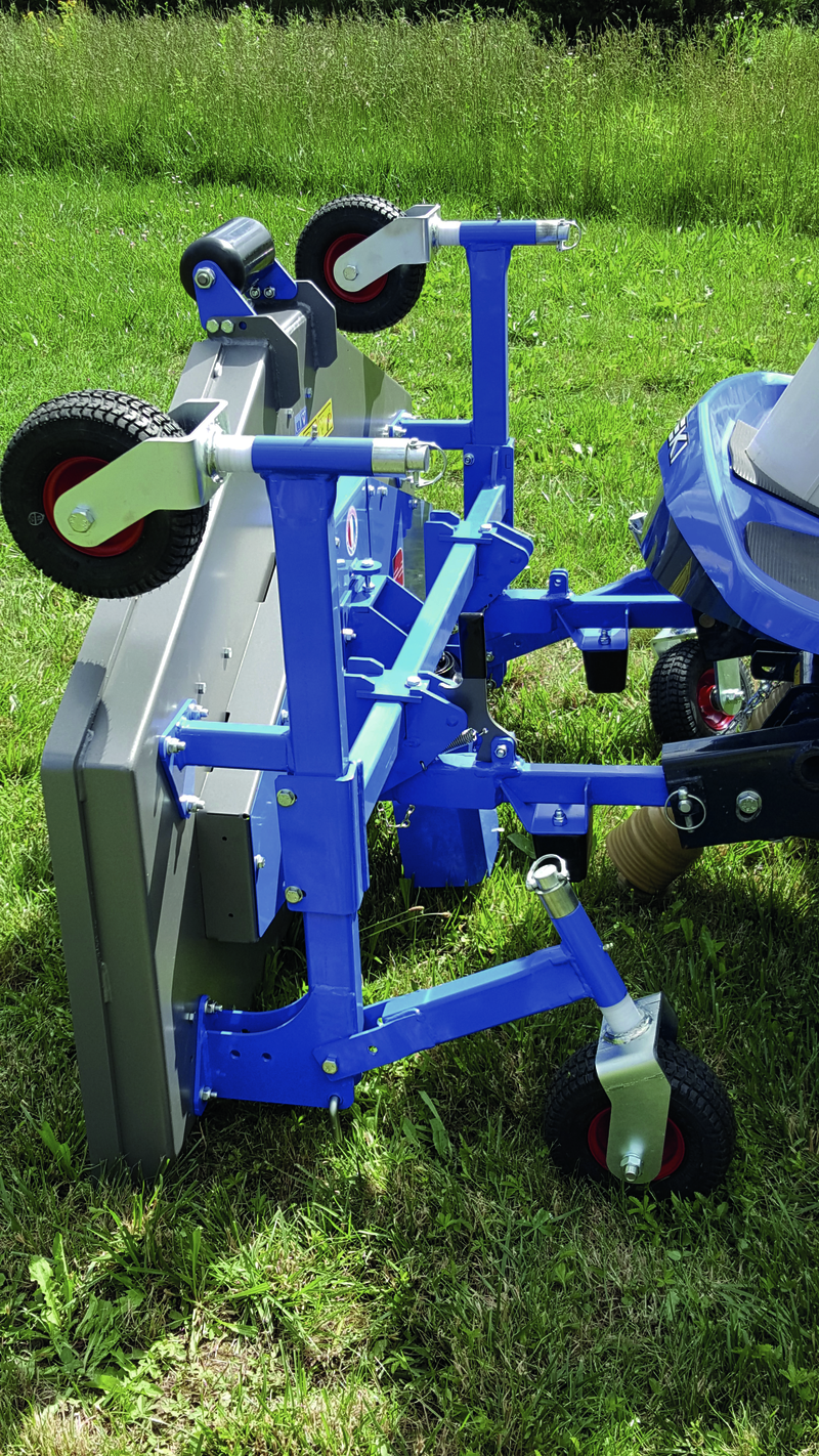 TMC-F mowers are specially designed for mulch mowing with ISEKI front mowers. The shape of their housing and their flat counter-blades can mow grass into very fine particles, thus avoiding having to collect it. They can also be quickly switched to rear discharge to mow grass over 10 cm high.