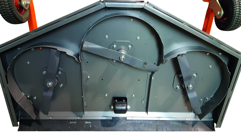 These mowers are designed for professional maintenance of green spaces and are intended to be hitched to the rear of 20 to 40 hp compact tractors. They are specially developed for mulch mowing. The shape of their housing and their flat counter-blades can mow grass into very fine particles, thus avoiding having to collect it. They can also be quickly switched to rear discharge to mow grass over 10 cm high.