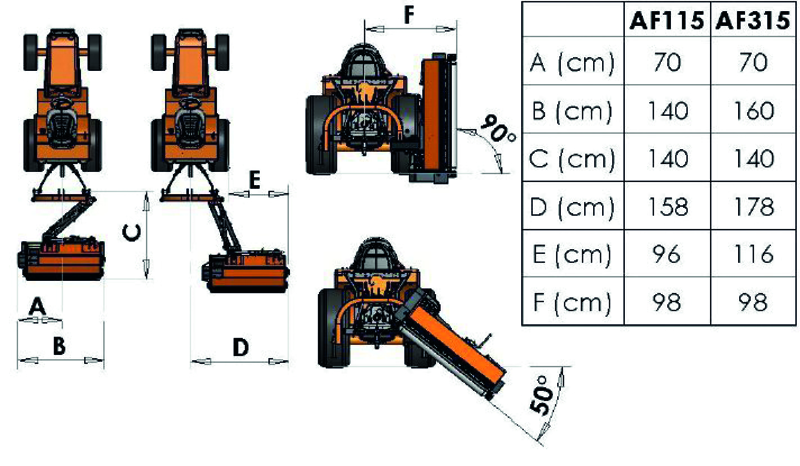 Ces broyeurs ont été développés spécialement pour le broyage des herbes hautes et des broussailles présentes sur les bords de routes, les fossés et les talus. Leur système de bras hydraulique munit d'un limiteur de débit permet de les déporter facilement et en souplesse, mais aussi de les incliner pour atteindre les zones qui ne sont pas à la portée du tracteur. Un système de sécurité permet aux broyeurs de s'effacer en cas de rencontre avec un obstacle, évitant ainsi de les endommager.