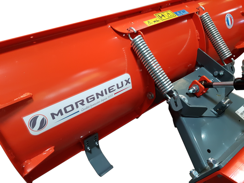 Conçue pour les microtracteurs d’une puissance allant de 12 à 20 cv, cette lame à neige est l’outil indispensable pour les travaux de déneigement domestiques ou occasionnels. Son système de sécurité muni de ressorts amortisseurs permet d’éviter tout endommagement de la lame en cas de choc avec un trottoir, une plaque d’égout ou bien une bordure. Très maniable, elle permet de déneiger une largeur de 112 cm une fois inclinée à 30 degrés. Elle est inclinable manuellement mais peut également être équipée d’une orientation hydraulique pour une plus grande souplesse d’utilisation.